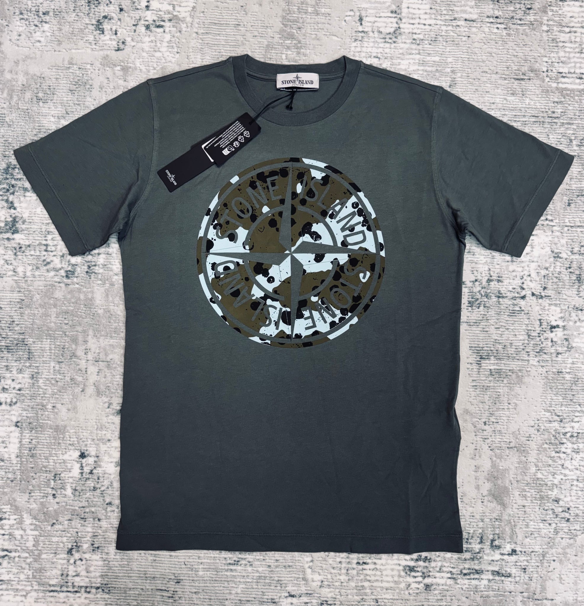JUNIOR STONE ISLAND- COMPASS LOGO-PRINT COTTON T-SHIRT GREY